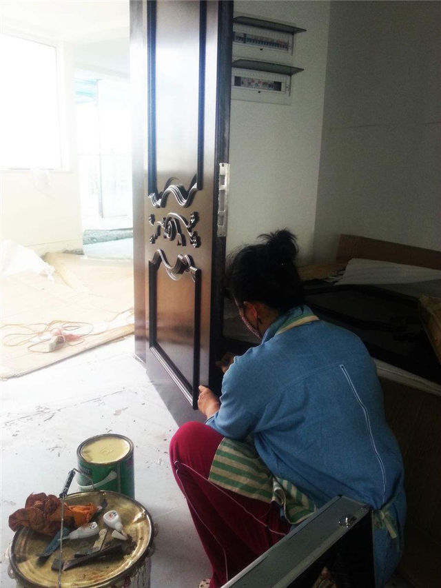 4、開始刷油漆,刷的時(shí)候從上到下,從里到外、速度要快,每次刷薄一點(diǎn),不要這里刷一塊哪里刷一塊。