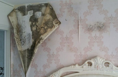 透出黑色來(lái),撕開墻紙里面比外面嚴(yán)重。