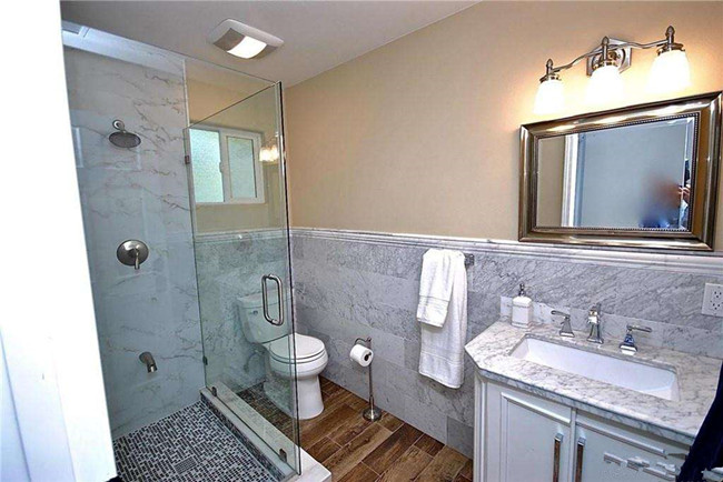 4.加強(qiáng)玻璃:厚而安全,防刮和耐用,有很好的反射效果,令浴室看起來更晶瑩,適宜與木臺(tái)面配置。