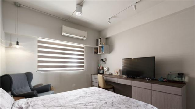 臥房以木皮包覆柜體、空間,延續(xù)公領(lǐng)域的減壓氣息,再透過(guò)色彩的轉(zhuǎn)換,展現(xiàn)臥房主人個(gè)性!