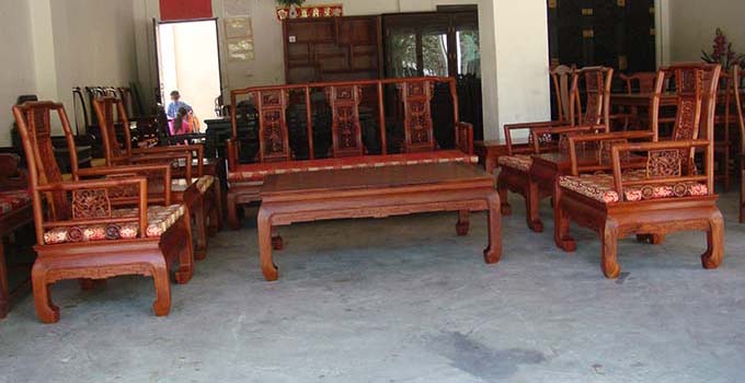 在搬運(yùn)紅木家具的時(shí)候,一定要將其抬離地面,輕提輕放,絕對(duì)不能在地面上拖拉,以免損傷卯榫結(jié)構(gòu)。在搬動(dòng)紅木桌椅時(shí),留意桌面和椅面,以防刮花。柜子最好卸下柜門(mén)后再搬運(yùn),一方面可以減輕重量,另一方面也可避免柜門(mén)活動(dòng)而發(fā)生意外。如需移動(dòng)特別重的家具,可用軟繩套在家具底盤(pán)下再移動(dòng)。