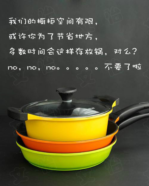 咱們中國人的廚房,都不算太大,擁有很多鍋,收納就會成為一個問題。很多人習慣不管三七二十一,洗好了之后就摞在一起。恩,那樣是節省空間和地方了,但是如果沒有妥善的放置,也會減少鍋的使用壽命,或者美觀哦。
