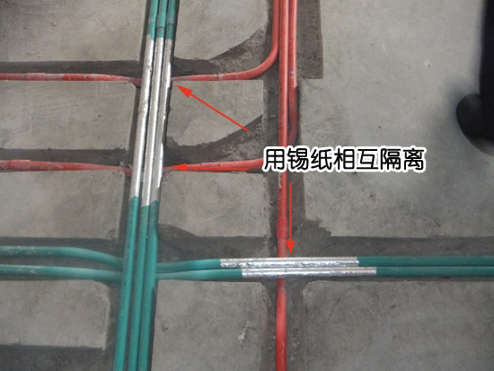 3、強弱線管交叉處應用錫紙隔離,保護線管。