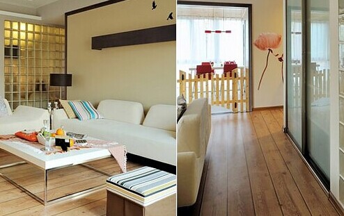6、看看地板是否起翹,聽聽地板是否空心,留意地板有無明顯的縫隙和不平整,地板與踢腳板接合部是否密合,在每個房間里慢慢地走一遍,仔細聽聽有無響聲。