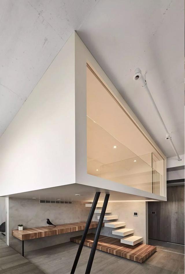 這種設計可以更好的將部分空間進行重新劃分處理,上面睡眠區域,下方書房區域,明明是一個空間,卻劃分成了兩個屋子,而且私密性更強,增強空間利用率。