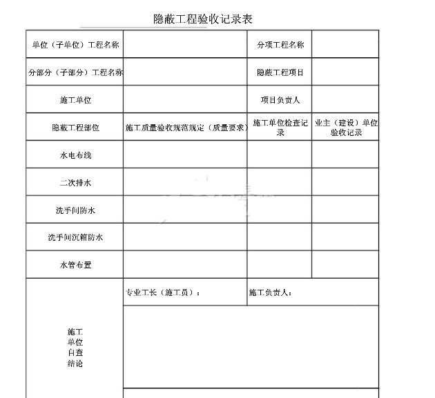 隱蔽工程驗收規范 隱蔽工程驗收記錄表