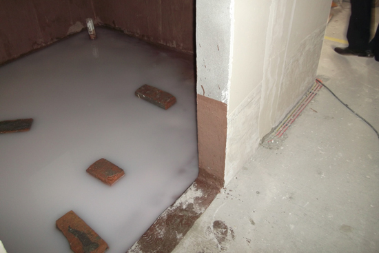 驗收防水的辦法是:用水泥沙漿做一個檻堵著廁衛的門口,然后再拿一膠袋罩著排污/水口,再加以捆實,然后在廁衛放水,淺淺就行了(約高2cm)。然后約好樓下的業主在24小時后查看其家廁衛的天花。主要的漏水位置是:樓板直接滲漏;管道與地板的接觸處。