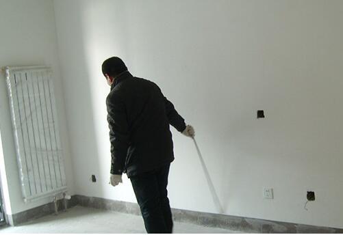 用空鼓錘進行各個墻面的敲擊,聽聲音。有空鼓的地方用粉筆標記出來。