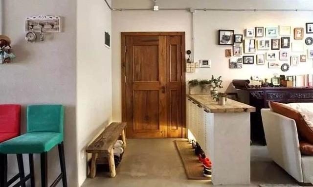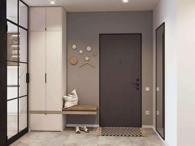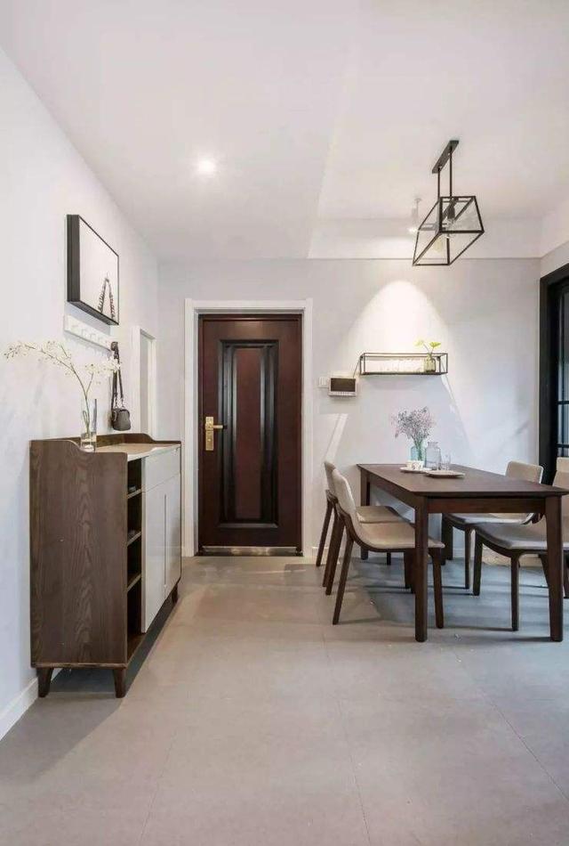 這種玄關里的門,直接選擇普通室內門即可。這樣即可以保持整體裝修風格的統一,又可以降低裝修費用。