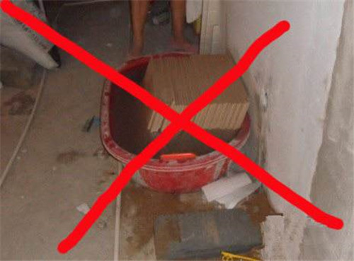 瓷磚放人水盆時,一定要釉面向上,陶面向下。如果釉面向下,瓷磚互碰,很容易掉瓷。此外,磚從盆中撈出候,地上要墊上紙箱,將瓷磚釉面向上,背靠墻放,以免磕碰掉瓷。