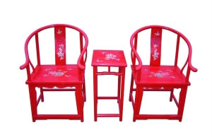 ??? 大朵描花圈椅 這個大紅圈椅掃除了人們對中式家具的沉悶印象,漂亮的大紅色是中式節(jié)日不可缺少的色彩,上面的大朵描花更增添了幾分趣味。