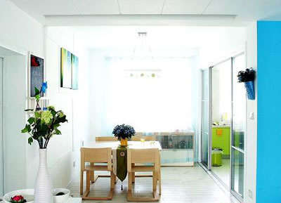 一般人在居家中,不太敢嘗試過于大膽的顏色,認為還是使用白色比較安全。如果喜歡用白色,又怕把家里弄得像醫(yī)院,不如用白+藍的配色,就像希臘的小島上,所有的房子都是白色,天花板、地板、街道全部都刷上白色的石灰,呈現(xiàn)蒼白的調(diào)性。