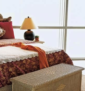 ??? 藤質(zhì)的床尾收納箱實(shí)用至極,內(nèi)部可以放置大量的過(guò)季床上用品,而且其堅(jiān)實(shí)的表面可以放置一些輕巧的物品。
