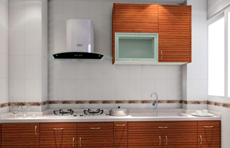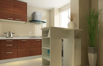 ??? 設(shè)計(jì)說(shuō)明:廚房面積較小,空間中有兩個(gè)大立柱,立柱之間的距離很狹。定制廚房利用空間化、立體化的優(yōu)點(diǎn)。包住兩個(gè)柱子在廚柜中,兩個(gè)柱子之間很狹的空間用來(lái)吊放油煙機(jī)。