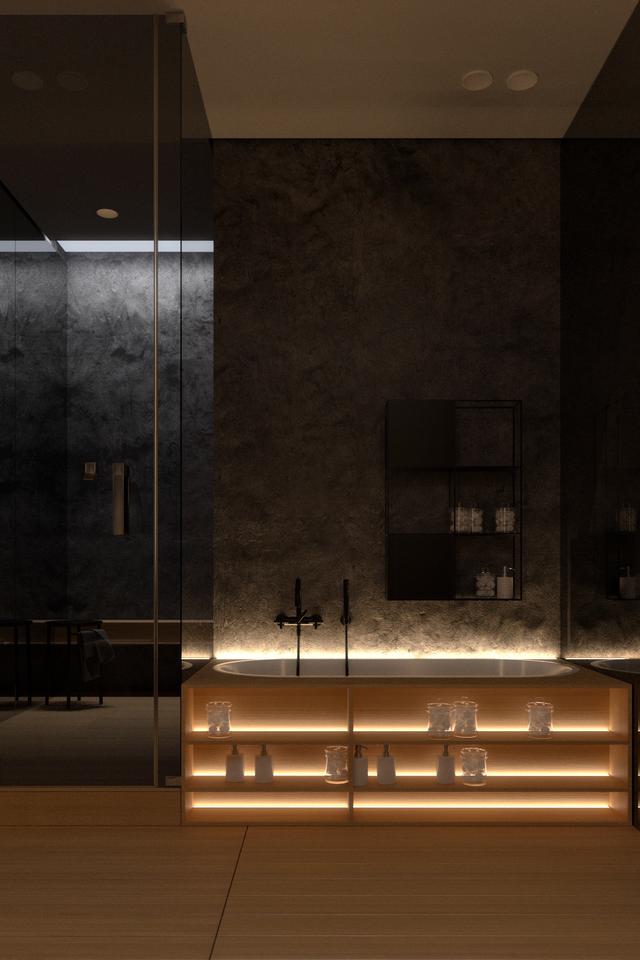 現代照明設計為浴室提供了層次感。