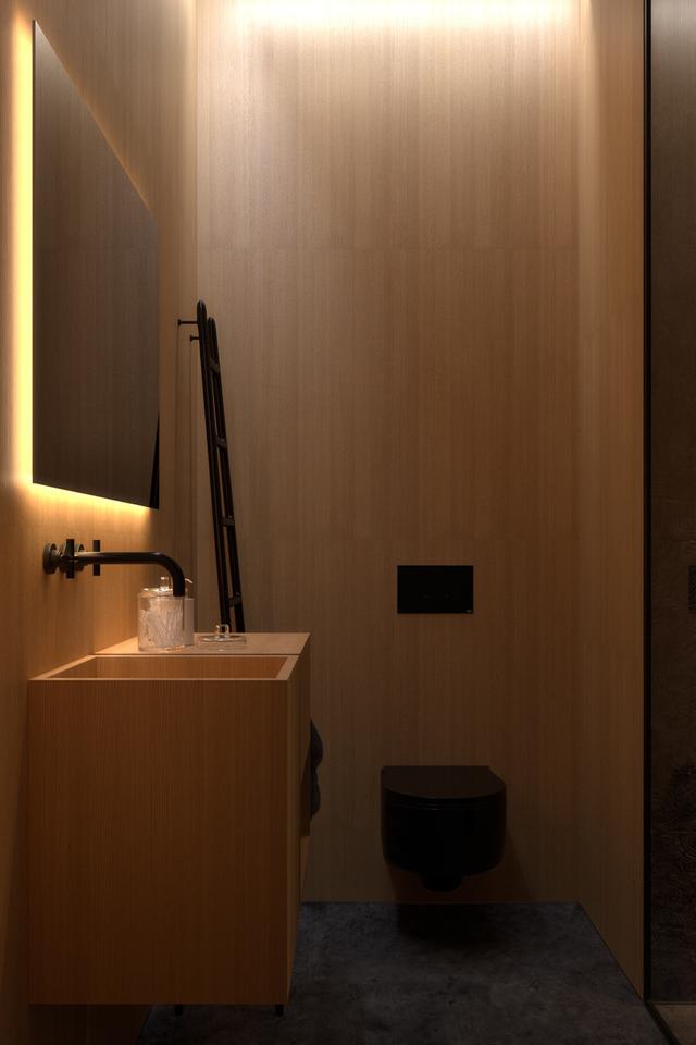鏡子的背光效果很好,把浴室的墻壁遮擋后,似乎像通往另一個空間的大門。