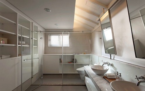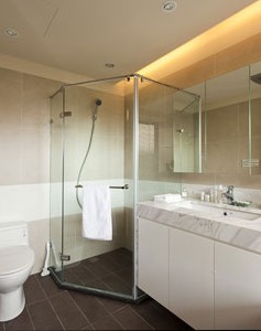 ??? 普遍住家的浴室都是采用一字型設(shè)計(jì),造型簡(jiǎn)單但變化性少,部分受局限的小間浴室,會(huì)結(jié)合浴缸一起施作。