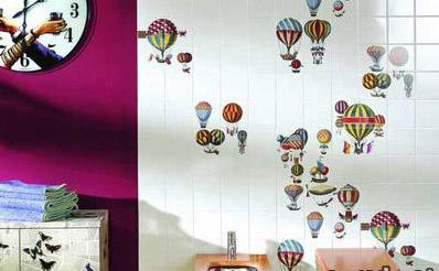 ??? 設有淋浴房的衛浴間,可以選取自己喜歡的顏色,多挑幾種色調的彩磚在淋浴房內縱向鋪貼一道色彩絢麗的墻面,再選一款顏色的彩磚給這面墻加個邊框,便能讓絢麗的墻面變身成為一幅裝飾畫。