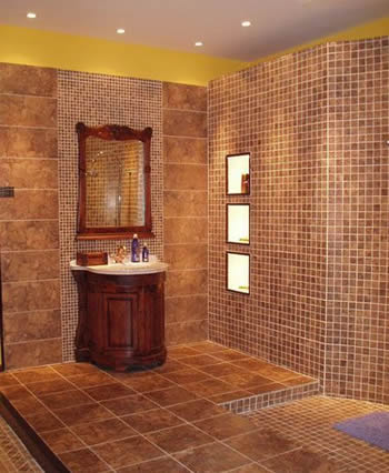 仿造天然石材感覺(jué)的瓷磚表面大多粗糙不平,作為浴室的地磚可以增大摩擦力,不易滑倒,也可以用作墻面造型和背景墻裝飾。