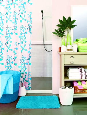 夏季浴室適宜采用夏季涼爽風(fēng)格的浴室紡織品。洗澡時(shí),清爽干凈的浴簾絕對可以增加好心情,白色、藍(lán)色、綠色的浴簾都能讓人感到清涼,盡情享受酷爽夏日。