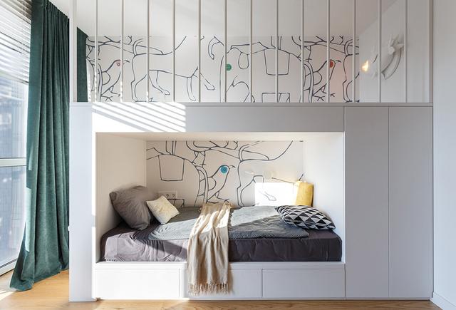 內置的兒童床有一個額外的床,一套抽屜和另一個壁櫥合并到它的設計。