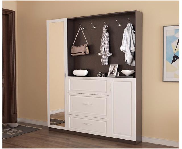 玄關(guān)的一側(cè)會(huì)有一整面墻壁,但是空間又不足以放下一整面柜子,這時(shí)候在墻上設(shè)計(jì)一些收納掛鉤就是不錯(cuò)的選擇,可以把衣服、帽子圍巾、鑰匙等能掛的東西掛起來(lái),不僅便于尋找也特別整齊,特別是很多衣服必須懸掛起來(lái)才不容易有褶皺。