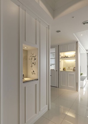 ??? 出入口的鞋柜,若有端景及展示功能的設(shè)定,可以利用石材與集中光源來營(yíng)造氣氛,中間只要單獨(dú)擺放一件藝術(shù)品,集中式的燈光就能烘托出藝術(shù)品質(zhì)感。