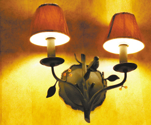 ??? 這款燈飾展現的是“自然風韻”流行趨勢,發現于萬隆匯洋“伯萊仕德”燈飾展廳。其主要材料是鐵,卻做成了樹狀結構,一只百靈鳥棲息在黑色櫻桃樹的枝頭上,栩栩如生,讓人不自覺地隨它的目光去同享大自然的風情。