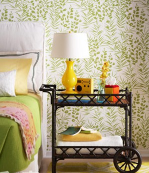 ??? 綠色相間的壁紙奠定了色彩的基調,和同樣來自于春天的亮黃色一起,趕走了歲末冬季的陰冷,讓死氣沉沉的臥室如沐春風般煥發出心生的活力。