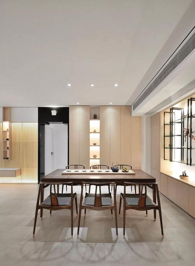 平頂很容易裝出大氣、開闊的視覺效果,它對(duì)戶型沒有多大限制,適合大多數(shù)家庭使用。在裝修的時(shí)候可以留點(diǎn)小心機(jī)。例如,在頂面嵌入直線形的黑鏡或黑線,這樣不僅顯得精致,還可以產(chǎn)生視覺的延伸感。