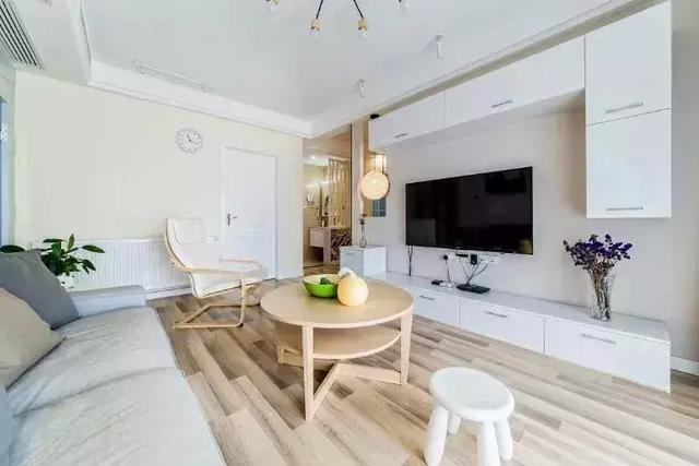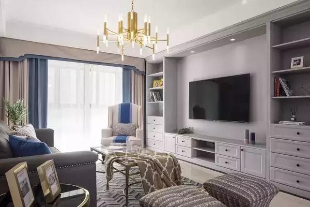電視墻只用來掛電視,那就太浪費了。不如做些墻面電視柜,可以收納客廳的雜物,保持空間干凈整潔,客人突然來了,也不擔心收拾不過來。