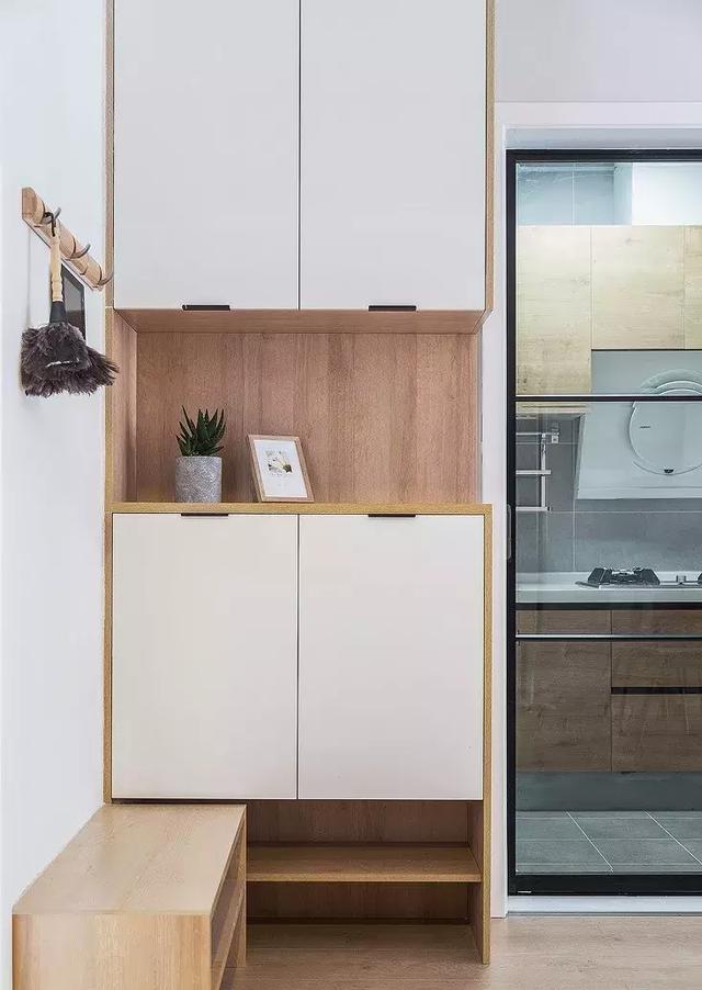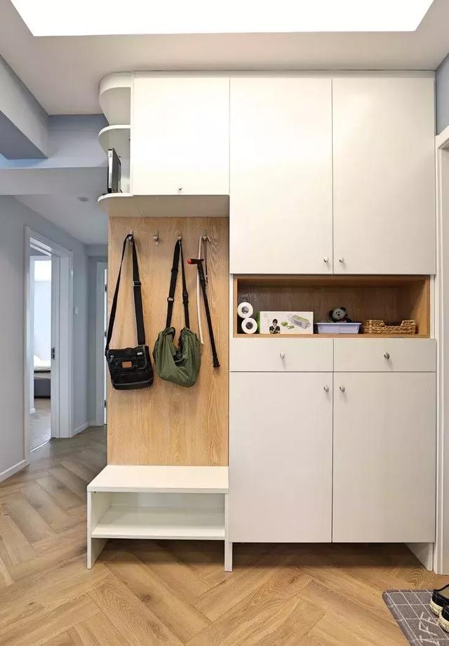玄關柜可以做幾個抽屜,放一些襪子、手套這些小物件,方便出門隨手拿,就不用大老遠從臥室帶出來了。