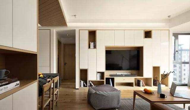 嵌入式電視柜更省空間,代替隔斷臥室的墻面。