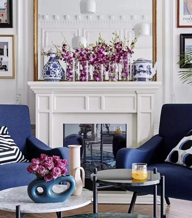 歐式風格少不了金色裝飾物,比如壁爐上的金色畫框。