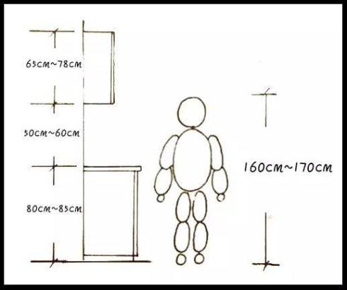 還有就是為了保證操作臺的空間,吊柜距臺面的高度至少要留50-60公分的空間。
