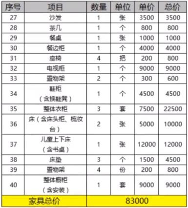 整個裝修過程,花銷最多的就是家具部分,這個部分僅供參考,預算少就少花,預算多就多花一點。家具中,定制衣柜和床品是最大的部分,幾乎占了家具花費的一半!