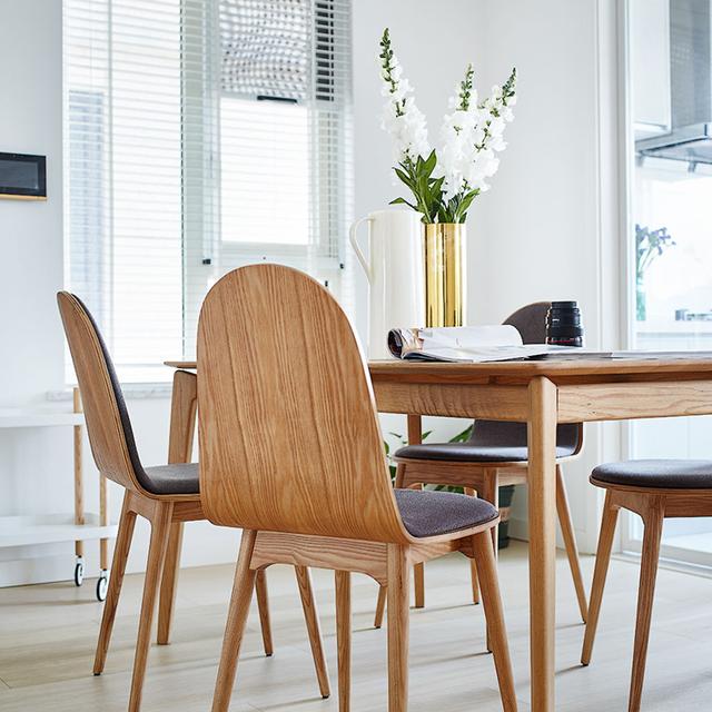 餐廳裝修和客廳實現的是一體化的設計,餐廳搭配的是原木色的實木餐桌椅,餐桌上面擺放的是花瓶進行餐桌裝飾,這樣比較簡單的餐廳布置的十分優雅,在這樣的餐廳用餐透過窗臺的溫暖陽光,也會覺得十分的輕松享受。