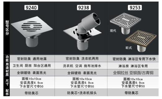 地漏主要用于衛生間、廚房個陽臺區域,市場上的地漏主要有3種,一是直通式密封地漏,主要用于衛生間,防潮防臭,使用壽命也比較長。二是硅膠密封地漏,密封性最好,一般被用于放洗衣機的地方。三是翻板芯地漏,這種特點就是下水速度快,但防臭效果差。