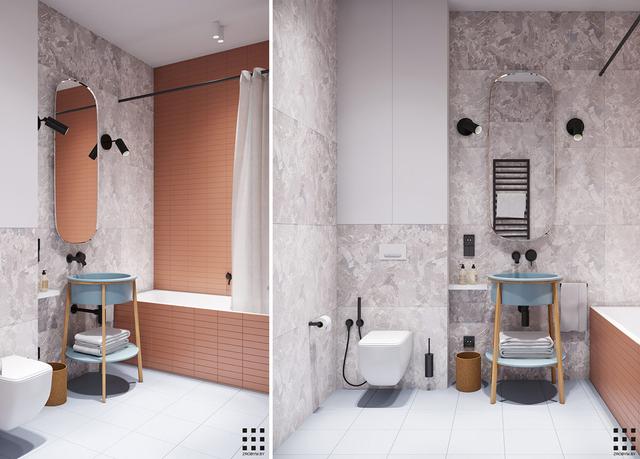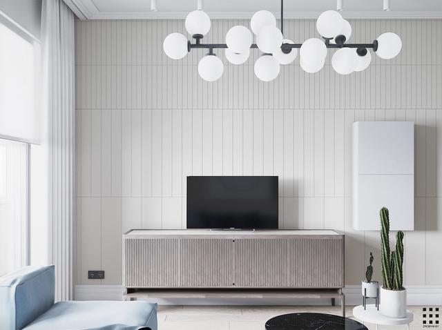 由Zrobym建筑事務所設計和視覺化的白俄羅斯明斯克Zakharova的這套94.6平方米的公寓裝修設計采用了柔和的藍色、藍綠色和青銅色調。色調,從光譜的每一邊走到一起,形成一個歡迎的溫暖調色板與和平的質量。有一個循環的主題貫穿整個家庭內部。墻壁藝術和嵌套的咖啡桌有一種圓形美學,還有大型圓形墻壁鏡子、圓形吊燈、嵌入式天花板燈、半圓形壁架和曲線形餐椅。滑動玻璃門使小房間感覺開放和通風,隱藏的存儲體保持整潔。