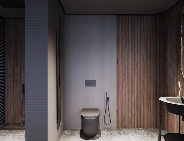灰白色的背景襯托著一個(gè)灰色的廁所。