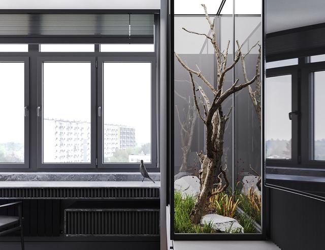 第三個(gè)室內(nèi)空間位于俄羅斯莫斯科的一套133.2平方米的公寓,是為一對(duì)年輕夫婦設(shè)計(jì)的。沙發(fā)被安排在開(kāi)放式布局內(nèi),定義了一個(gè)正方形的休息區(qū)。其中一張沙發(fā)后面放著一張小邊桌,方便把當(dāng)前的閱讀材料放在身邊。