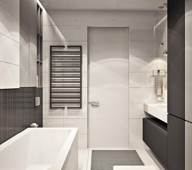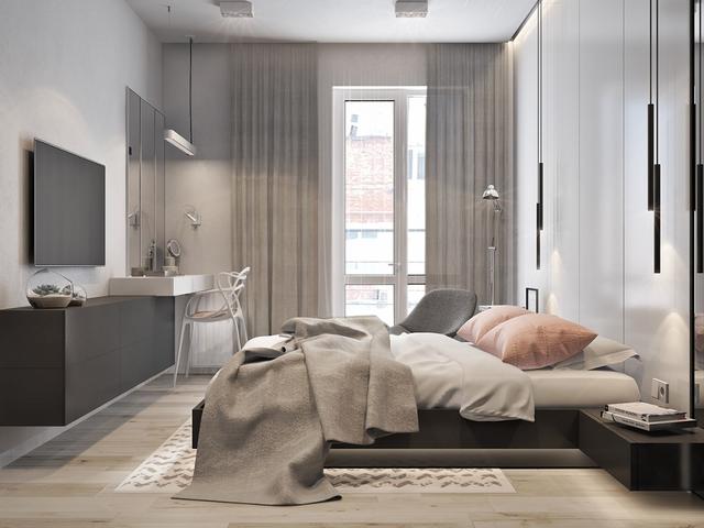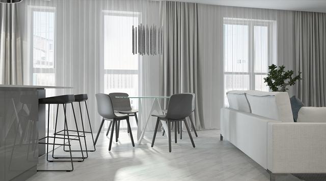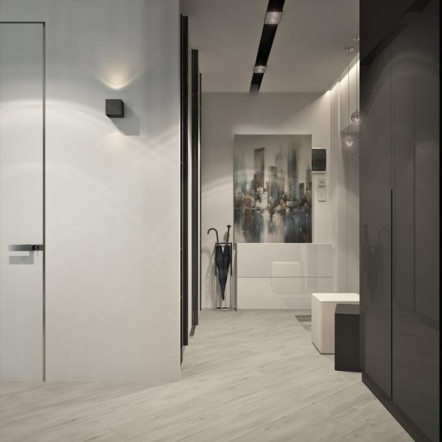中性裝飾是一種安全而柔和的室內裝修設計方案,但為了防止中性裝飾平放,最好也加入一些深色調。這個柔和的灰色和白色的公寓有一個裝飾方案,做到了這一點——通過融入一些大膽的黑色基調,外觀變得尖銳,賦予更多的重量。這里也出現了一些彩色蠟筆,藍色調、餅干和腮紅散墊擺放得很講究。由Konst設計和視覺化的現代住宅,也有一個孩子的房間,在粉色到淡紫色的光譜中更顯喜慶。浴室和連接空間嚴格保持單色和清爽。