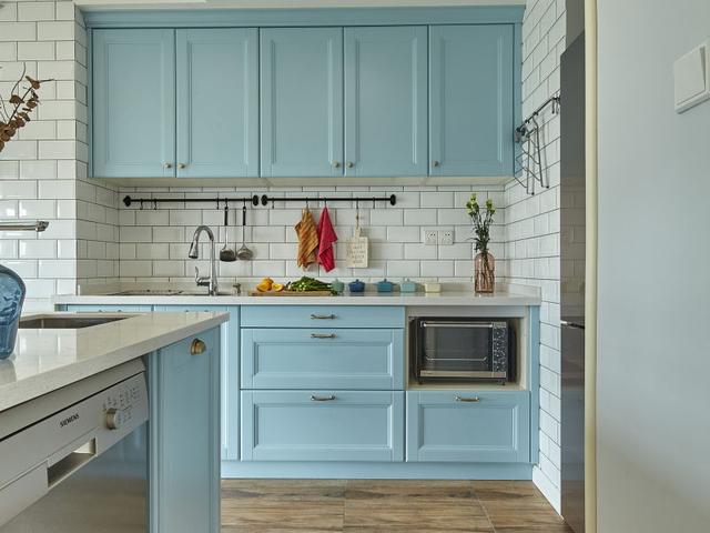我很喜歡廚房裝修,尤其是櫥柜的顏色真的是太好看了,這樣的廚房設計一看就想要下廚,開放式的廚房格局設計,打造的是一體式的櫥柜和吊柜,中間是一個吧臺的設計,這樣的裝修方式顯得廚房很大氣有格調。