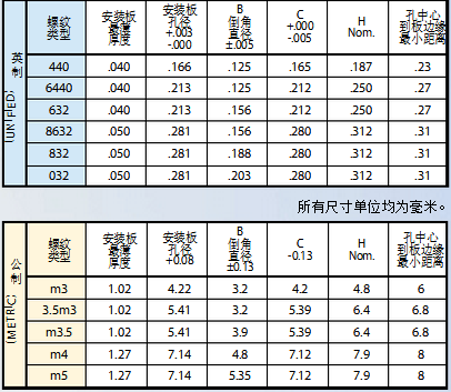 這里涉及的板孔與螺母的配合,參考上面提及的壓鉚螺母規格,一般來說板孔徑要比螺母的C值略大一點,具體大多少,還是看表格吧。