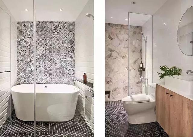 主衛(wèi)和次衛(wèi)兩個(gè)空間的設(shè)計(jì)大部分相同,區(qū)別就在于一個(gè)是淋浴,一個(gè)是浴缸,還有墻面的花磚裝飾有所不同。