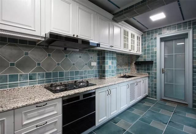 廚房,面積夠大,櫥柜一字型排開,還留下很大空間。在這樣闊綽的廚房烹調,該是多么愜意的享受。
