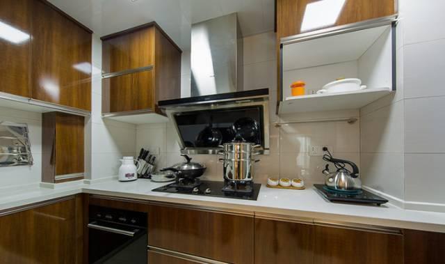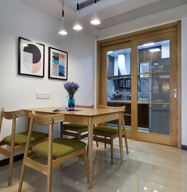推拉門連接廚房與餐客廳,保證了兩處空間的通透性。