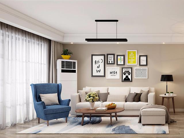 首先我們看一下客廳,客廳整體看上去簡(jiǎn)單時(shí)尚,墻壁上采用了淺咖色的格調(diào),在沙發(fā)背景墻上還裝飾了一組北歐風(fēng)格的壁畫,使得客廳看上去更加年輕時(shí)尚。
