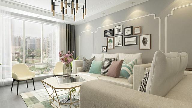 花費8萬裝的新房,雖然裝修費用很省錢但是趕上了精裝房了,客廳的裝修背景墻的設計是亮點,用很有美感的白色邊框做的造型,打造一個三分的背景墻,掛放組合形式的壁畫進行背景墻裝飾,顯得十分的文藝小清新。