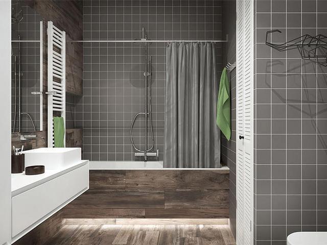 舊房子衛生間面積都不大,但是這樣改造顯得非常合理時尚,墻壁上采用了高級灰色的瓷磚,搭配白色的縫線,顯得非常時尚有層次感,把淋浴和浴柜放在了最里面,利用簾布隔開,這樣能夠起到非常好的干濕分離的效果。